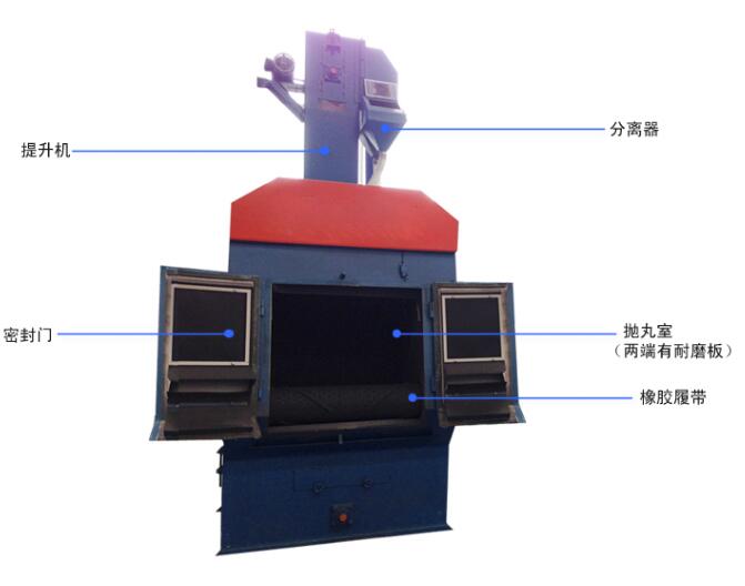 履帶式拋丸機(jī)一種鑄件、鍛件及圓簧、軸承的表面清理強(qiáng)化的新型清理設(shè)備。它能清理工件的重量,尺寸,體積,生產(chǎn)效率,可進(jìn)行人工,機(jī)械或自動(dòng)加料。工件在拋丸室里進(jìn)行翻滾,拋丸室由環(huán)形的槽型皮帶以及兩頭由高耐磨材料制成的封頭組成,輸送皮帶上裝有導(dǎo)向條,從而保證了工件所有表面都暴露在外且翻轉(zhuǎn)時(shí)不會(huì)發(fā)生過度碰撞。工人在操作履帶式拋丸清理機(jī)時(shí)應(yīng)嚴(yán)格遵循實(shí)用程序: